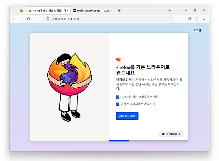 3. 파이어폭스 브라우저의 설치를 마치고, 실행한 화면입니다.