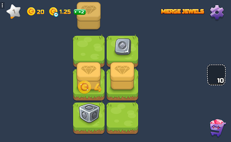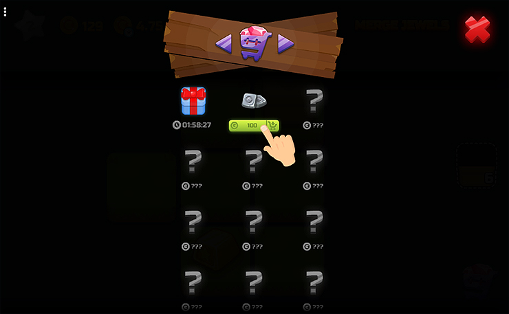 - 보석상자를 열고 > 합치고 > 다시 열고 > 생산하고를 반복해 나가는 게임입니다.