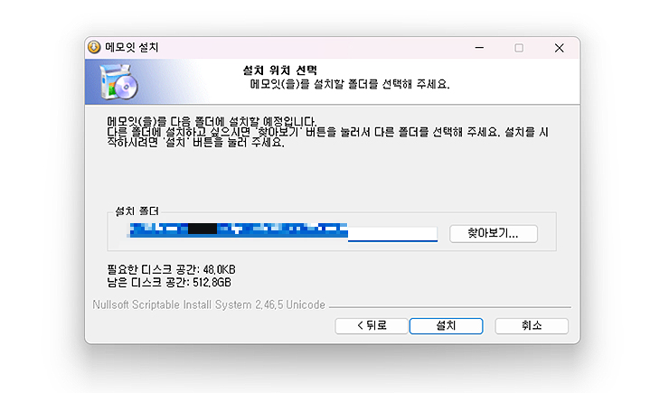 5. 설치 경로를 통해 설치가 완료됐다면, '메모잇 설치 완료'라고 나오게됩니다.