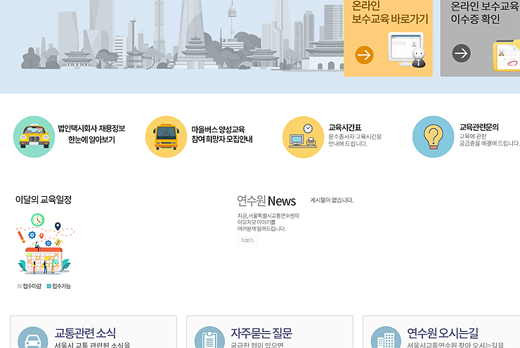 우선, 사이트로 이동하기 위해 포털에 '서울시 교통연수원'을 검색하거나 아래 링크를 따라 이동해 주시길 바랍니다.