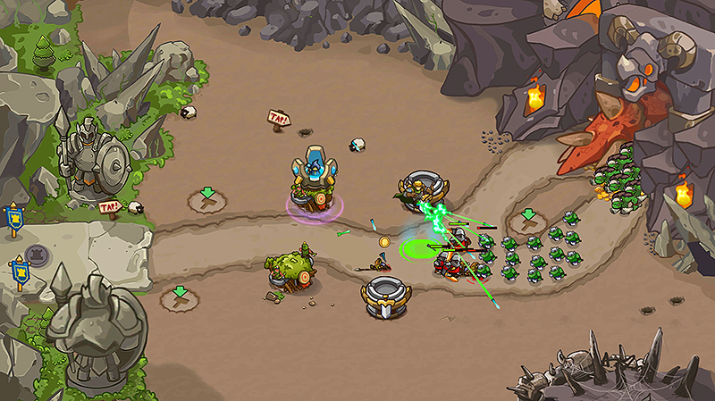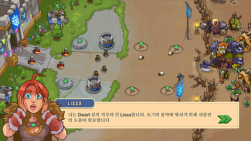 소개에도 나와 있듯이, 타워 방어 게임의 장르로써 최고의 전략으로 왕국 경계를 지키라는 미션을 갖고 있습니다. 그래픽은 아래에서도 보여드리겠지만, 이곳에서 미리 영상을 통해 혹은 캡쳐본을 통해서 확인하실 수 있었습니다. 2D의 고전적인 느낌이 나기도 했습니다.