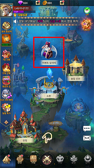 게임을 실행해 주신 다음, [이벤트 알리미] 메뉴를 선택해줍니다.
