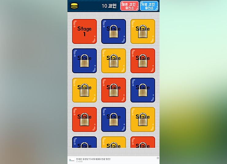 다운을 받고 앱을 실행했을 때 보이는 화면 입니다. 시작을 눌러 게임을 진행할 수 있었습니다.