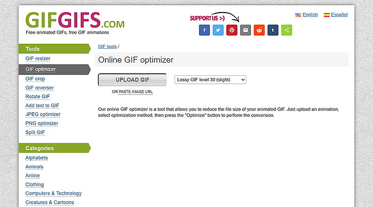 마지막으로 소개해드리는 곳은 'GIFGIFS'라는 사이트입니다. [upload gif]를 눌러 파일을 압축할 수 있으며, 간단하게 압축 및 다운로드 받아 활용해 주시면 됩니다. 또한, 왼쪽 메뉴를 보시면, gif 관련 여러 메뉴들도 있으니 필요하신 부분이 있다면 선택해 이용해 주시면 되겠습니다.