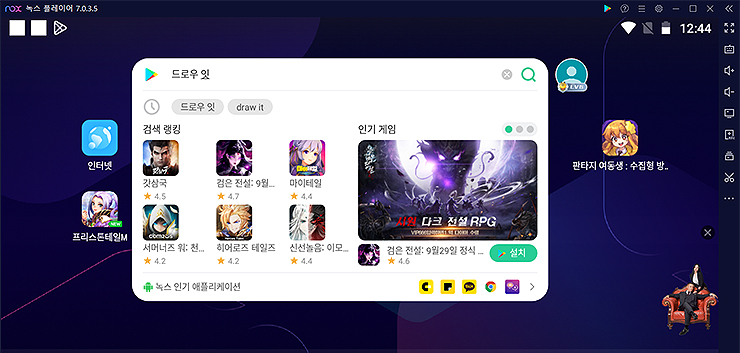 드로우 잇을 pc로 즐기기 위해 앱플레이어 설치가 필요합니다. 저는 녹스 플레이어를 사용했으며, 설치는 녹스 플레이어 공식 홈페이지에서 진행하실 수 있습니다. 사이트 링크와 간단한 가이드 글도 올려두었으니 참고해서 이용해 주시면 되겠습니다. 녹스 앱플레이어 다운로드 사용법