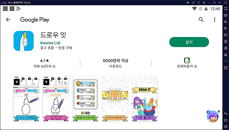 드로우 잇 검색 시 구글 플레이로 검색이 되며, 설치 페이지가 나오게됩니다.