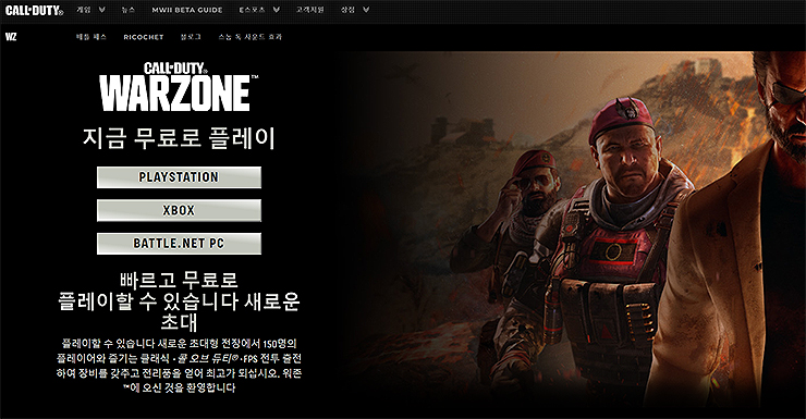 1. 설치를 위해, '콜오브듀티 워존 공식 홈페이지'로 이동을 해주셔야 합니다.