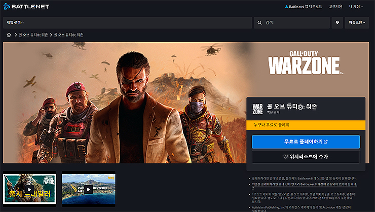 안녕하세요. 오늘은 콜오브듀티: 워존(call of duty: warzone)이라는 게임의 pc 무료 다운로드 안내를 해드리도록 하겠습니다. 주제 그대로 해당 게임을 pc로 플레이하고싶으신 분들이 참고하시기 좋은 글이며, 오늘 안내는 battle.net 을 통해 설치하는 과정을 준비해봤습니다. 어디에서 어떻게 설치하시는지 궁금해서 오신 분들이라면, 아래 내용을 참고해주시면 되겠습니다.