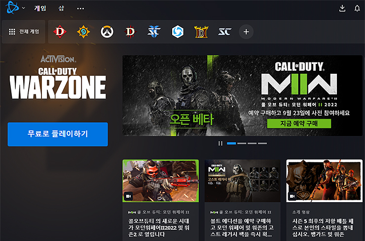 *배틀넷이 기존에 설치되어 있으신 분들은 > 전체 게임에서 > 콜오브듀티 워존을 찾아 선택 후 설치를 진행해주셔도 됩니다.